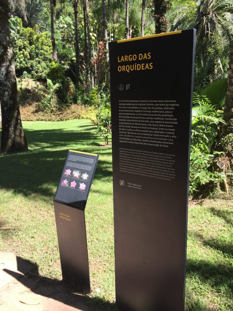 Largo das Orquídeas: dedicado a espécie Cattleya walkeriana, uma das espécies mais desejadas pelos colecionadores, o largo conta com aproximadamente 17 mil orquídeas, distribuídas em 48 palmeiras nativas e exóticas. CÓDIGO NO MAPA: J7