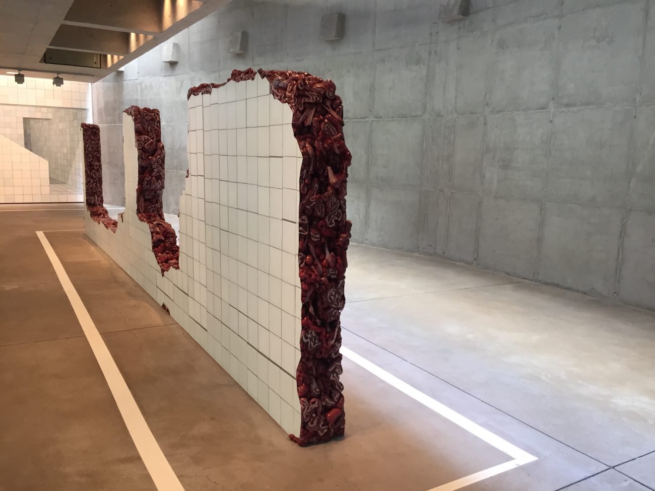 Galeria da Praça – Forty Part Motet, de Janet Cardiff: esta foi uma das obras que mais gostamos. Em uma sala enorme, está sendo reproduzida uma composição feita para a Rainha Elizabeth 1ª, em 1575, para oito coros de cinco vozes. Janet Cardiff, gravou cada integrante do coral da Catedral de Salisbury. Foi destinado um autofalante para cada voz, o que permite que o espectador, consiga perceber as diferentes combinações e harmonias, a medida que vai circulando no ambiente. Quem fica ao centro, escutará a composição em conjunto. É uma obra linda, que faz você sentir a presença de cada pessoa que está cantando. É de arrepiar. CÓDIGO NO MAPA: G3