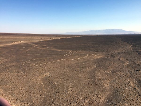Para quem não tem tempo, e/ou interesse e/ou dinheiro para fazer passeios de avião para visitar as inúmeras demarcações dos primitivos povos Nazca, como era nosso caso, pode-se apenas subir na torre que fica junto a rodovia e de onde pode-se avistar três diferentes desenhos: as mãos, a árvore e o réptil, que é literalmente cortado pela rodovia.