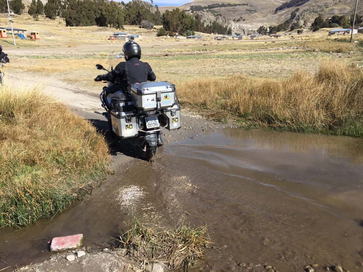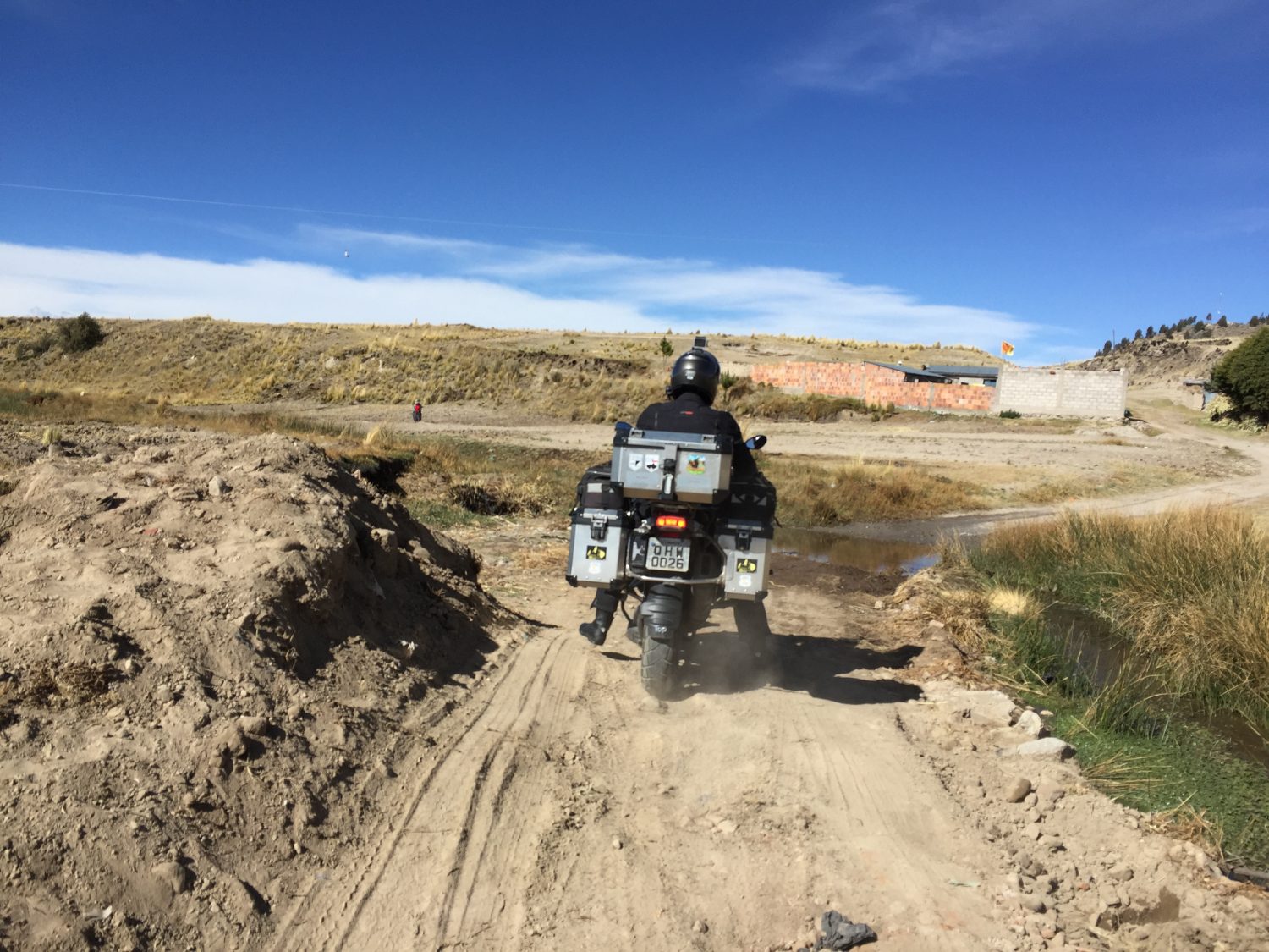 Pedimos para os locais se havia outro caminho e eles indicaram um caminho por estrada de terra. Onde só moto passaria. Como não tínhamos outra opção seguimos. A esta altura já estávamos achando que não conseguiríamos chegar na Bolívia neste dia e que teríamos que dormir no Peru. Mas onde?